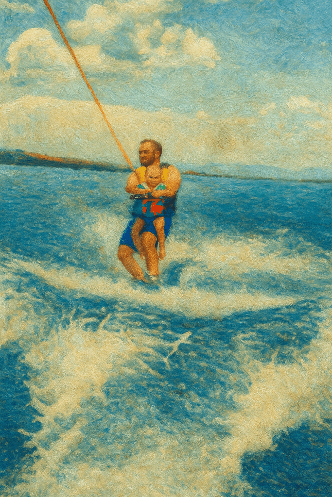 One of my favorite highlights was boating day. It was a simple, special outing with just my father- and mother-in-law, Isaac, and the girls. Both LALA and MJ got to go out on the lake, and it was one of those memory-making days I’ll never forget. They tubed with Isaac and I, LALA had the biggest smile, and MJ was having a blast. LALA even got to try wakeboarding with Isaac and totally rocked it. She looked so cool and confident. Of course, the fun came with its fair share of scrapes and bruises, but she wore them like badges of honor.
